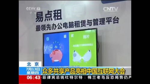 齐鲁晚报7月21日讯:作为共享经济的新业态代表,领先办公电脑租赁与管理平台易点租,在参加2017(第十六届)中国互联网大会期间,被CCTV4、CCTV13、中青网等多家媒体进行了采访报道。易点租所提供的办公电脑租赁和服务,为企业释放了大量现金流,节省了IT方面的管理精力和管理成本,高度契合了企业轻资产和消费升级的需求,推动了企业在转型升级时期的快速发展,得到了参会企业和媒体的高度关注。